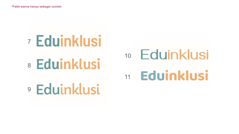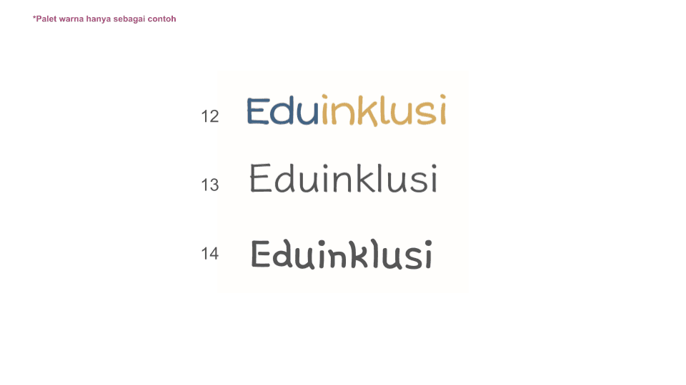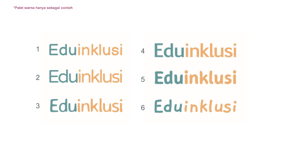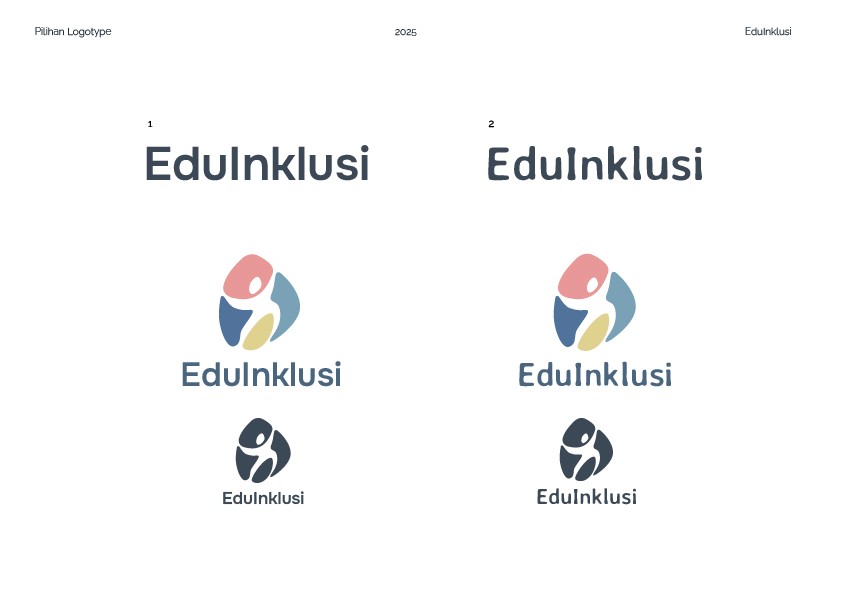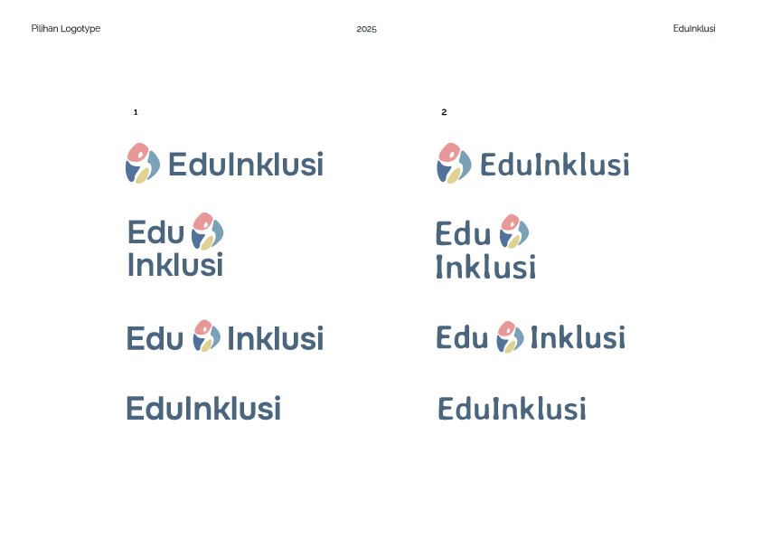 The chosen typeface is Averia Sans Libre in Bold. Upon client approval, I produced several derivates of character thickness, kerning and color placements. The client also requested the contrast between the words "Edu" and "Inklusi" to increase readability. Logo and typeface placements were also considered.