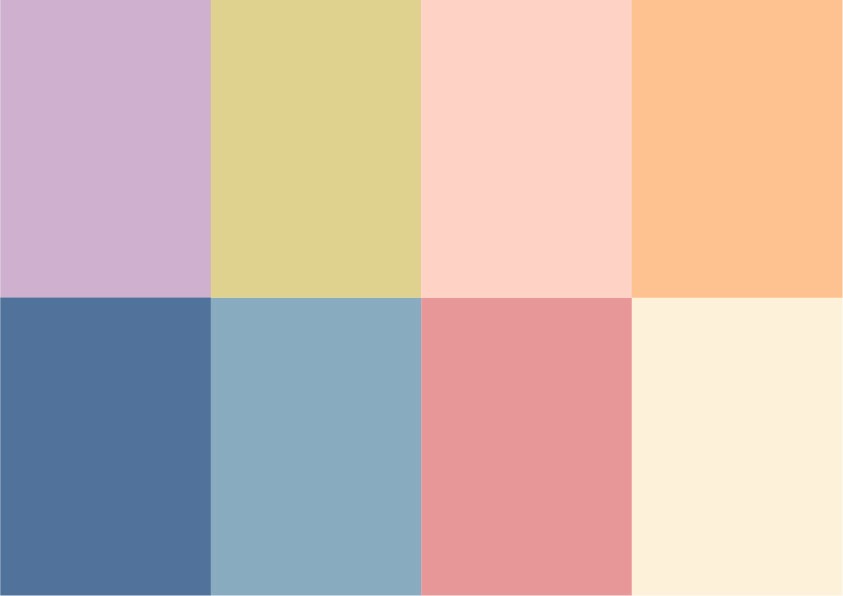 I resorted to pastel colors, with navy blue being the primary color, and orange being the secondary color on the overall color chart.