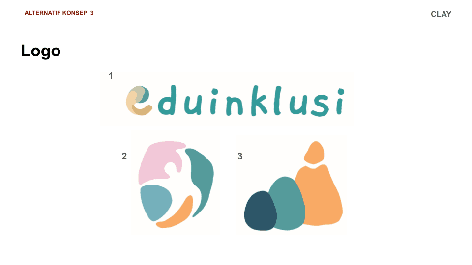 Out of the three constructed alternative branding concepts, Plasticine (clay) becomes the main object focus within the main values of EduInklusi. The putty-like modelling clay has the characteristics of children with disabilities; pliable, creative, and soothing. With different assortments of colors in playable plasticines, each color signifies the main support systems of the demographic; parents, educational institutions, therapists, and researchers.