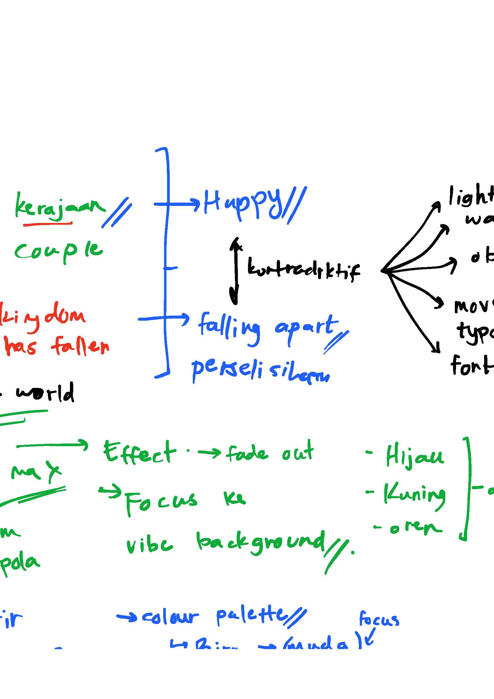 Backgrounds illustration starts from sunset and ending during sunrise. This follows the singers' voice characteristics and lyrics of the song. It reflects the "sad but hopeful" nature of the song and let the lyrics stand out.
