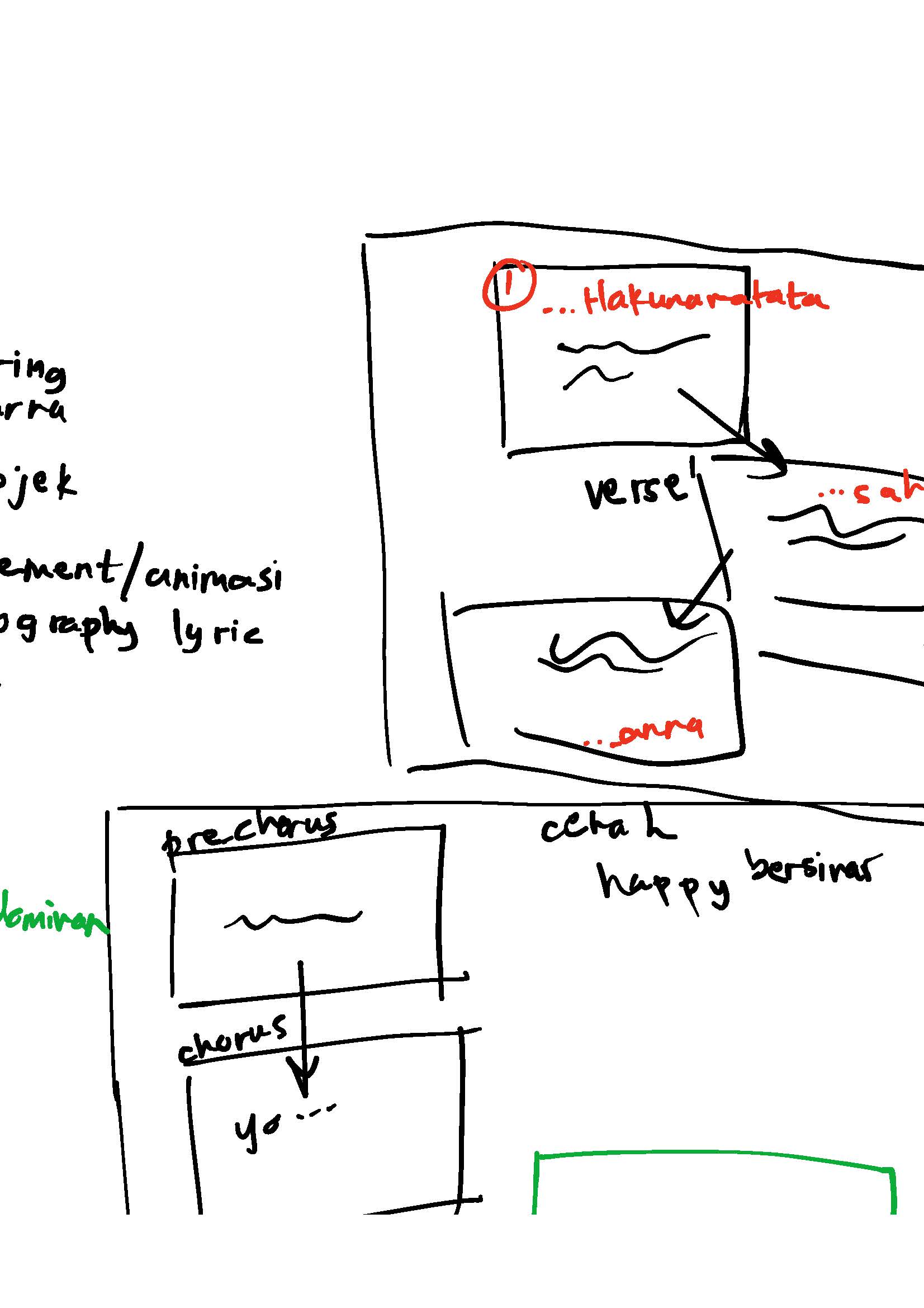 Illustration and typography of verse 2, chorus 1, and verse 3, by Azka Adie and Akmal Maulana